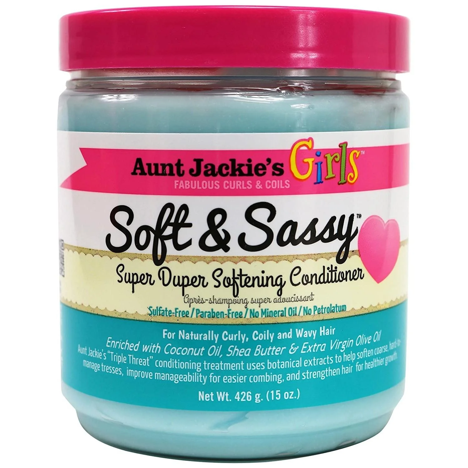Aunt Jackie’s “Triple Threat” conditioning treatment uses botanical extracts to help soften coarse, hard-to-manage tresses, improves manageability for easier combing and strengthens hair for healthier growth. Use as a regular rinse-out conditioner, co-wash or deep conditioning treatment. Helps soften hard-to-manage hair and gently loosens tight, coarse textures. Replenishes moisture, while natural conditioners contribute to strength and improved hair health.