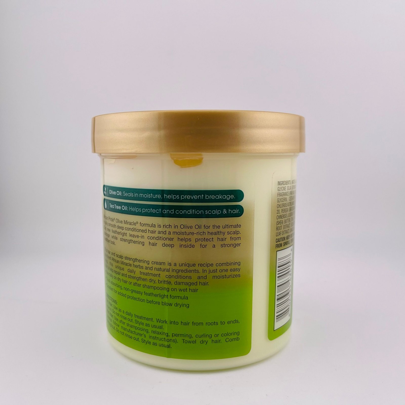 African Pride Olive Miracle Leave-In Conditioner 15oz is a nourishing hair care treatment specially formulated to strengthen, hydrate, and soften dry or brittle hair. Infused with natural Olive Oil, this leave-in conditioner helps reduce breakage, smooth frizz, and improve hair manageability, leaving your hair looking healthy and shiny.