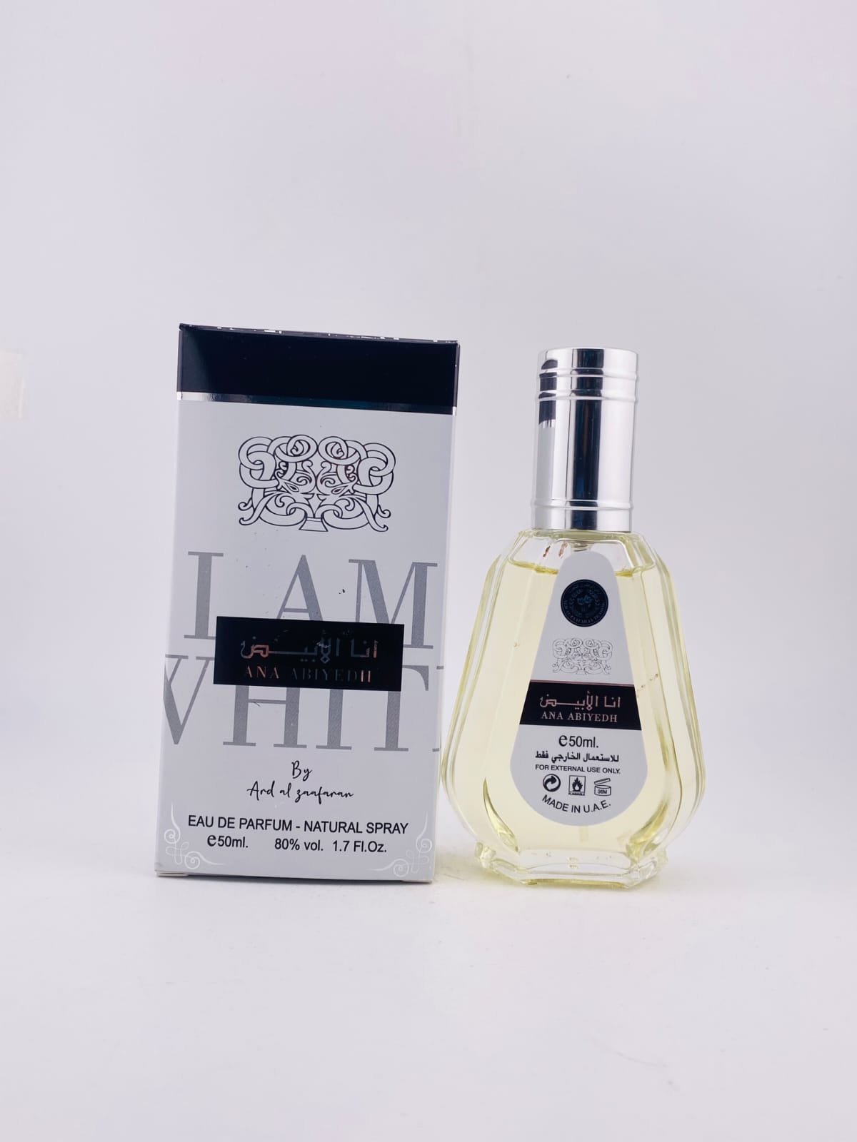 It means “I am white” in Arabic — suggesting purity and a clean scent profile.