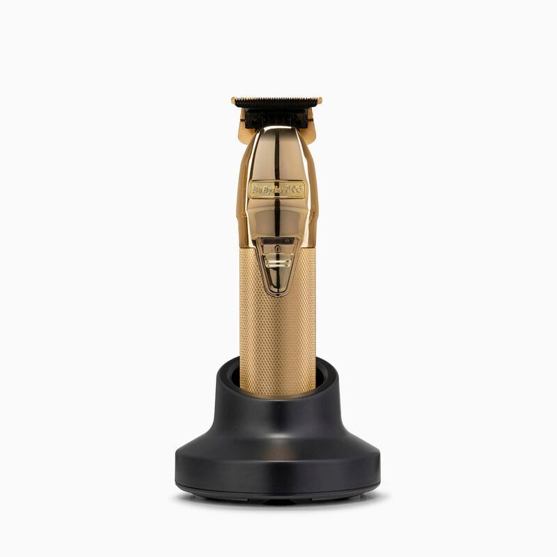 The BaByliss PRO Gold Super Motor Skeleton Trimmer for Men is a professional‑grade cordless detailing and grooming tool built for precise trimming, edge work, and outlining. It has a fully exposed extra‑wide T‑blade that gives 360° visibility and zero‑gap adjustment for very close, crisp lines. Powered by a high‑torque brushless motor and a lithium‑ion battery, it delivers about 120 minutes of cordless run time from a full charge and can also be used corded for continuous power. Precision‑engineered Japanese steel blades and a robust all‑metal housing make it durable and suited to heavy use, while its skeleton design provides balanced control for detailed trimming on beards, hairlines, and facial contours.