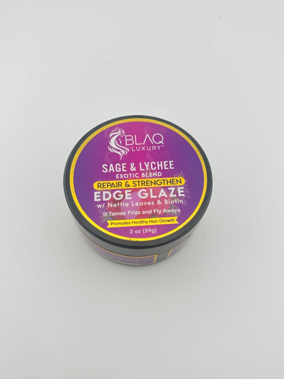 A hair edge control styling product designed to tame frizz and smooth flyaways around the hairline while providing a sleek, conditioned finish. It’s part of the BlAQ (Blaq Luxury) Sage & Lychee range and is infused with biotin and natural extracts like sage and lychee to help support stronger, healthier edges.