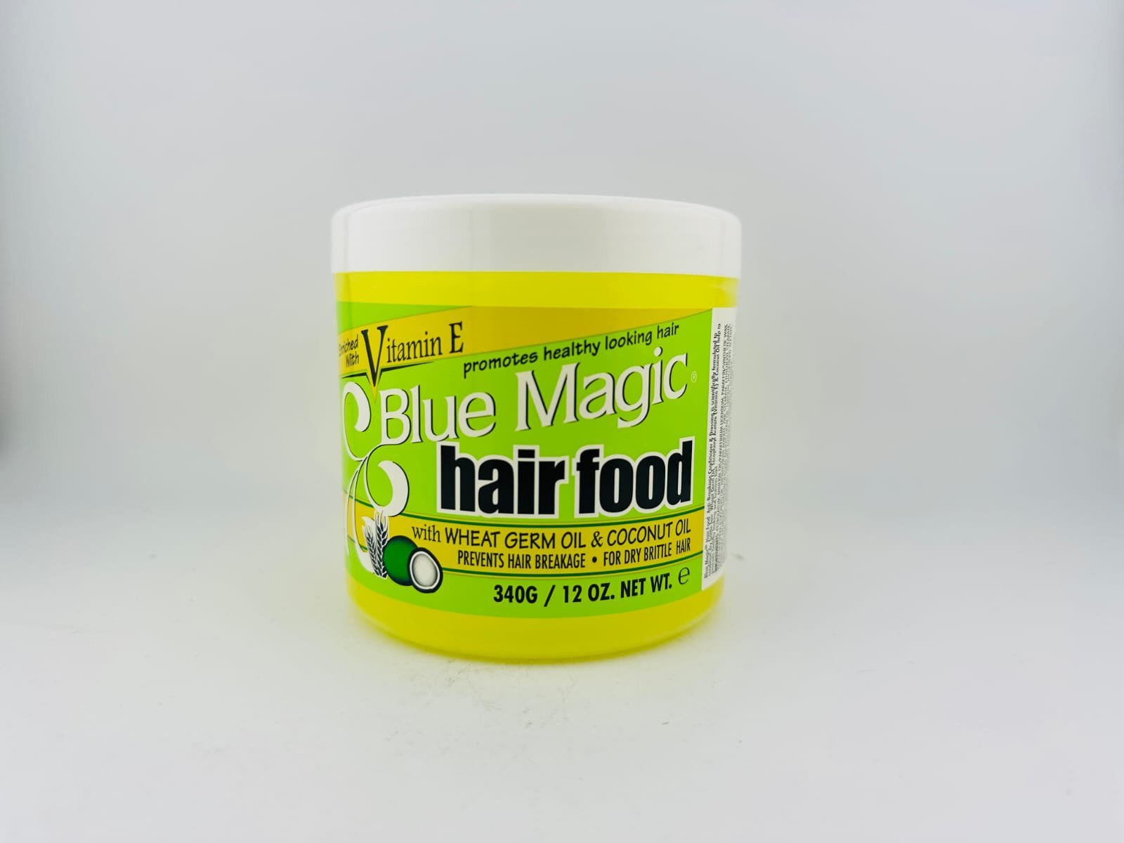 Blue Magic Hair Food is a nourishing hair and scalp conditioner/dressing enriched with Vitamin E, wheat germ oil, and coconut oil to help strengthen dry, brittle hair, add softness and shine, and improve overall manageability. Its creamy formula conditions both hair and scalp, helps prevent breakage, and can be used daily or as needed.