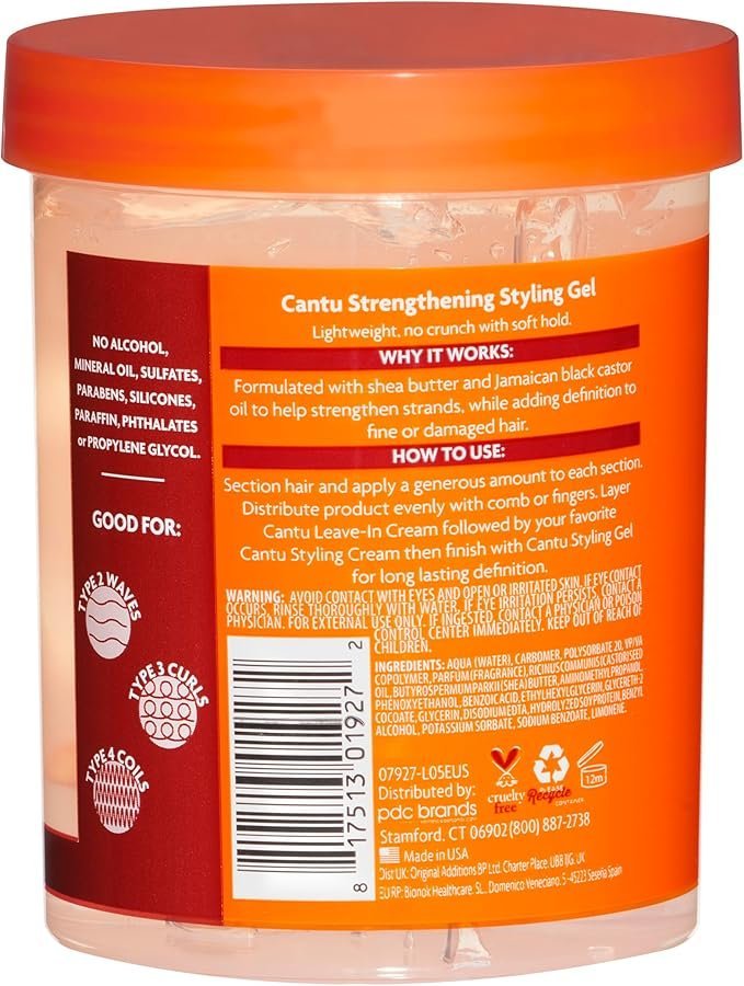 The Cantu Shea Butter Strengthening Styling Gel with Black Castor Oil (18.5 oz) is specially formulated to provide strong hold, moisture, and nourishment for natural hair. Infused with pure shea butter and black castor oil, this styling gel strengthens hair, reduces breakage, and supports healthy growth while leaving hair shiny, smooth, and frizz-free. Perfect for twists, braid-outs, locs, and protective styles. ✨????