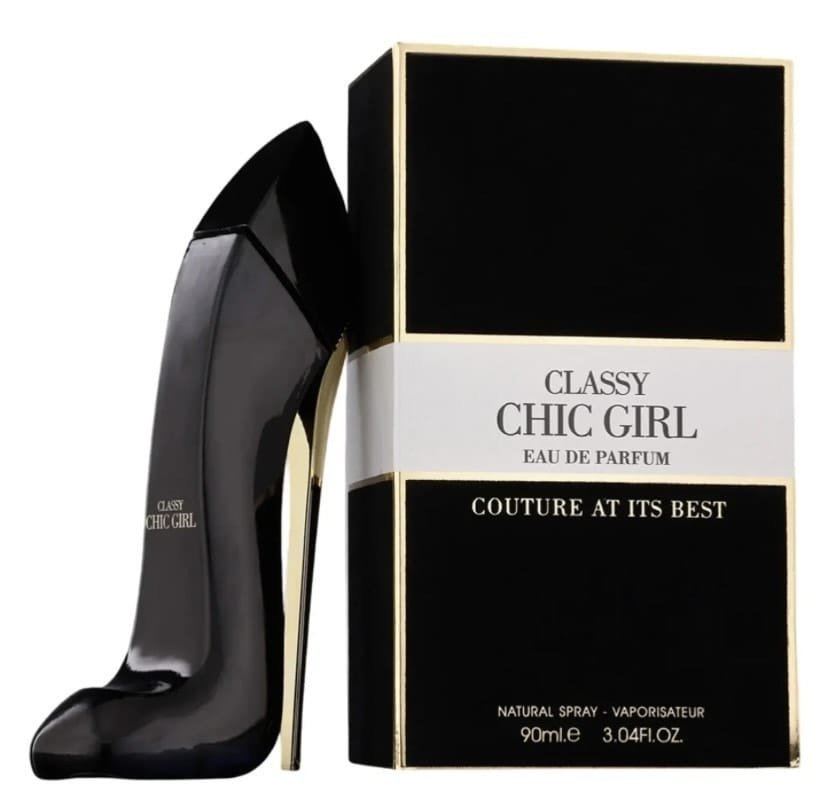 Classy Chic Girl is a modern, feminine Eau de Parfum that blends fresh, floral and warm gourmand elements into a sophisticated scent. It typically opens with bright, uplifting notes—often citrus and almond with hints of coffee—for an energetic, inviting start. The heart evolves into a lush floral bouquet featuring jasmine, tuberose and other blossoms, adding romantic and elegant depth. The dry-down leans warm and sensual with base notes like tonka bean, vanilla, cocoa/praline, amber and musk, giving a creamy, slightly sweet finish with good longevity and a noticeable trail. The overall vibe is chic, stylish and versatile—suitable for daytime wear or evening occasions where you want a polished, memorable fragrance.