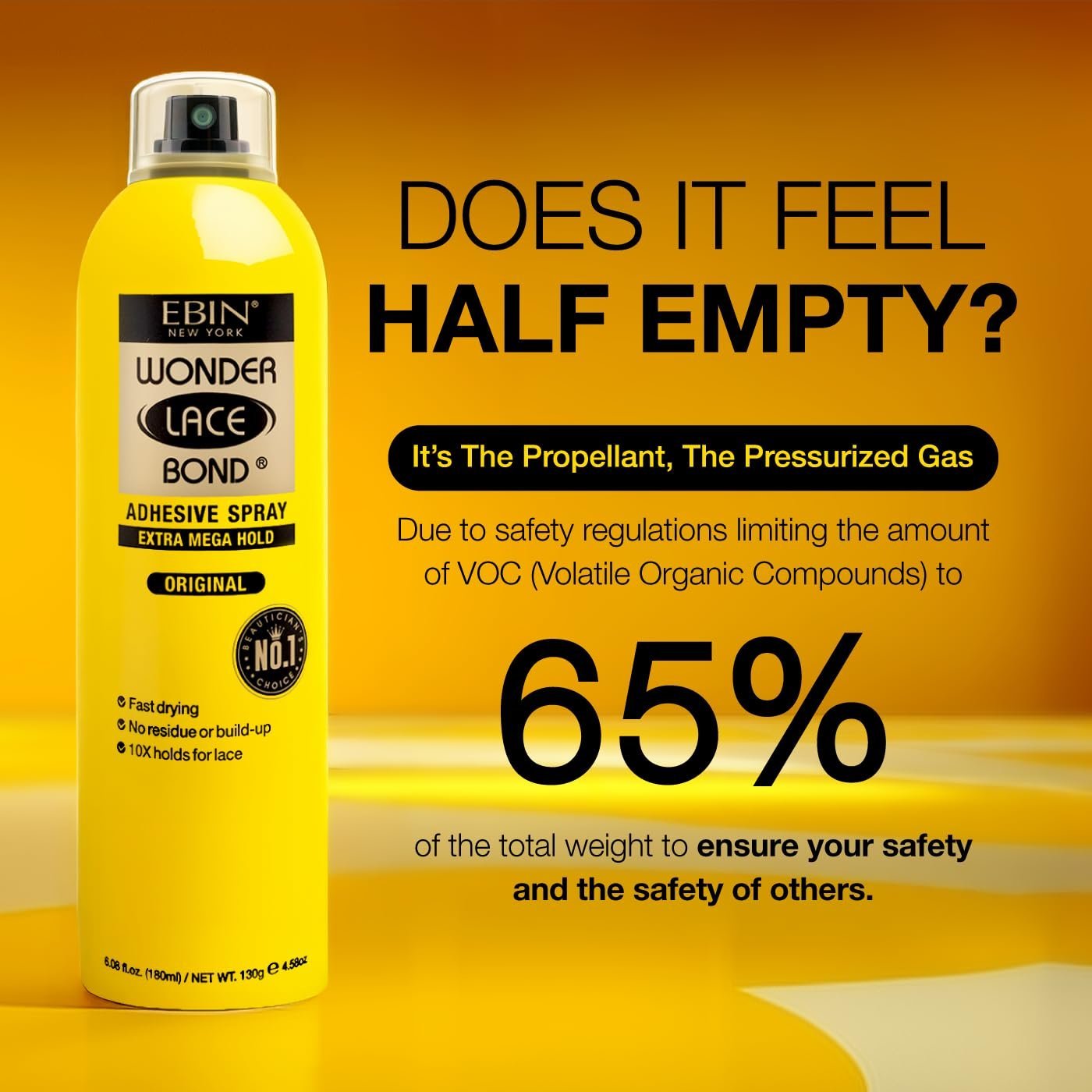 The EBIN NEW YORK Wonder Lace Bond Adhesive Spray Original – Extra Mega Hold makes daily wig installation easy and stress-free. Its strong, long-lasting hold keeps your lace secure while maintaining a smooth, natural look — perfect for confident, all-day wear! ????????