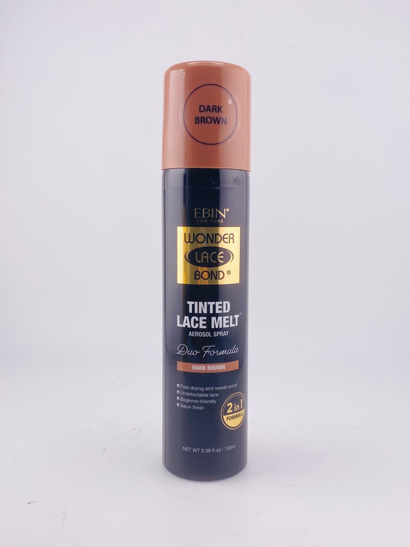 Achieve the perfect lace blend with EBIN NEW YORK Wonder Lace Bond Dark Brown Tinted Lace Melt. Specially formulated for deeper skin tones, this tinted lace spray enhances the natural appearance of your wig installation by adding a rich dark-brown tint that melts effortlessly into your complexion.