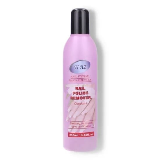 HAZ Nail Remover Dissolvant (250 ml / 8.45 fl oz) is a liquid nail polish remover designed to gently and effectively dissolve and lift traditional nail polish from natural nails. Its formulation helps break down color and finish without excessive rubbing, allowing smooth and easy removal. Suitable for regular use at home or in salons, it prepares nails cleanly for new polish or treatments. The product is convenient to apply and helps save time during nail care routines.
