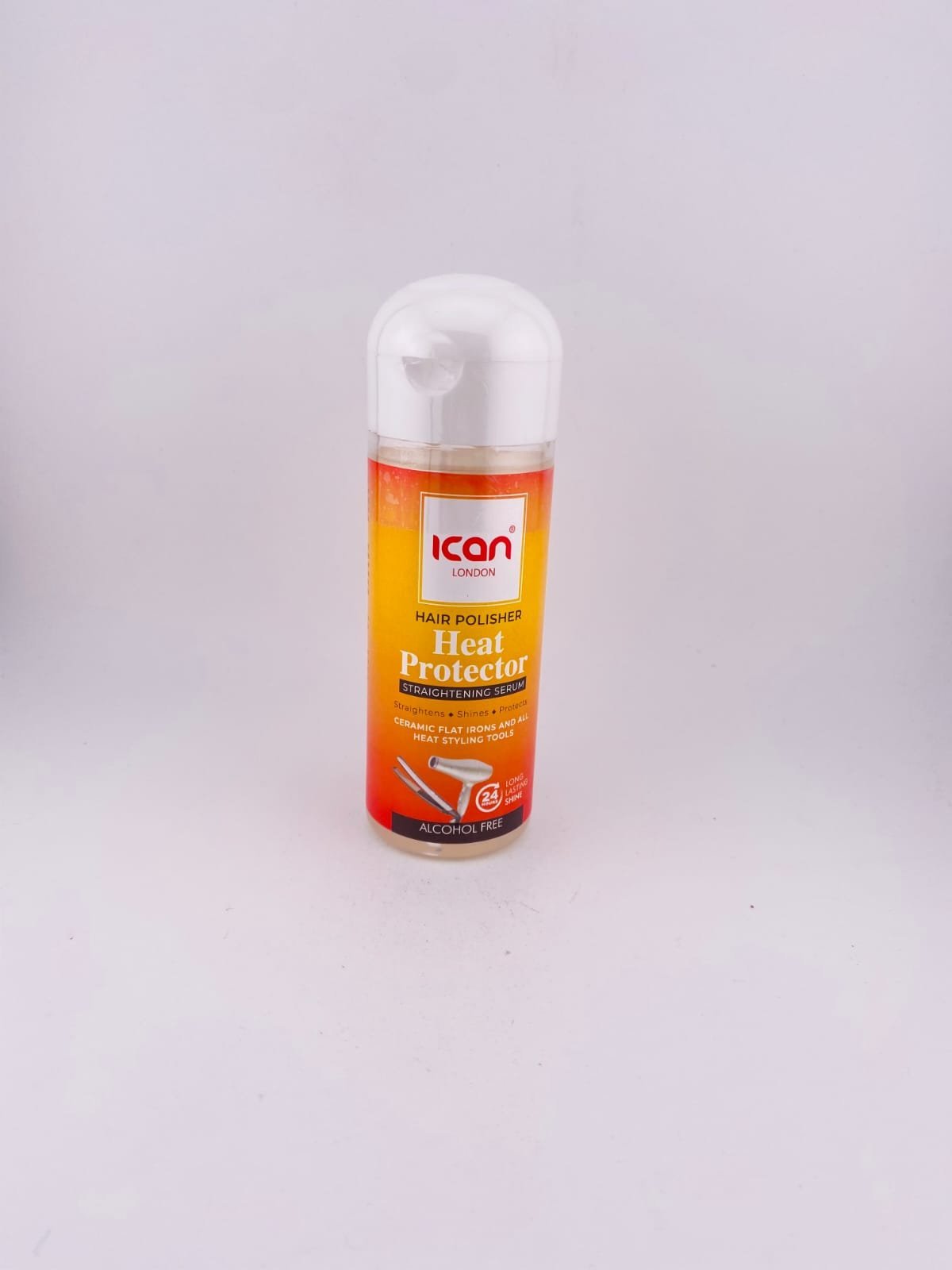 ICAN London Heat Protector Straightening Serum a lightweight heat‑protective hair serum designed to shield hair from damage caused by heat styling tools (like flat irons, curling wands, and blow dryers) while helping you achieve a sleek, smooth, and polished look.
