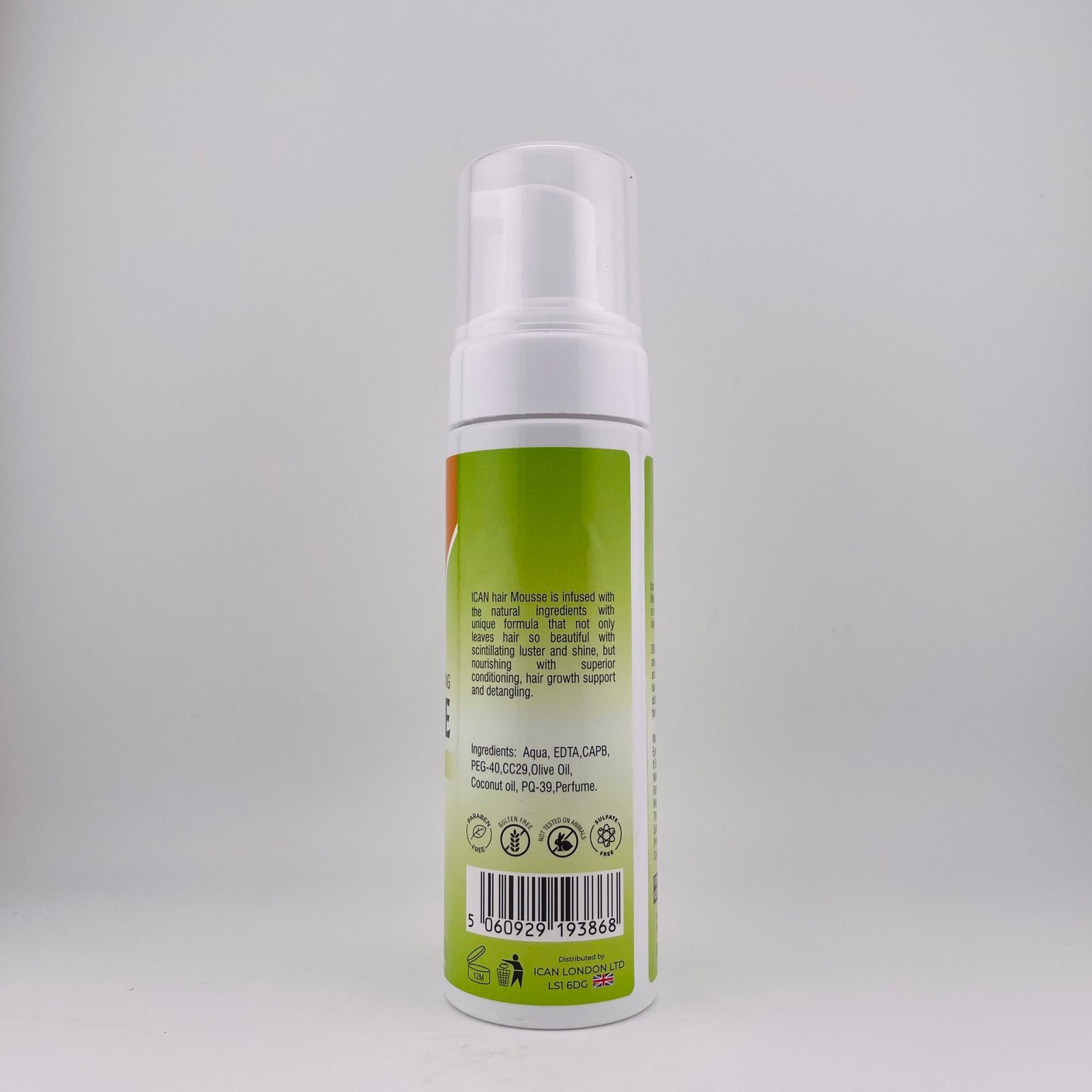 Achieve smooth, frizz-free styles with the Ican London Hold & Shine Wrap/Setting Mousse Olive Oil (7 fl.oz). This lightweight, non-sticky mousse is enriched with the nourishing power of Olive Oil to provide lasting hold, brilliant shine, and exceptional manageability. Perfect for wrapping, setting, molding, and defining curls, it leaves your hair soft, bouncy, and beautifully radiant. ????