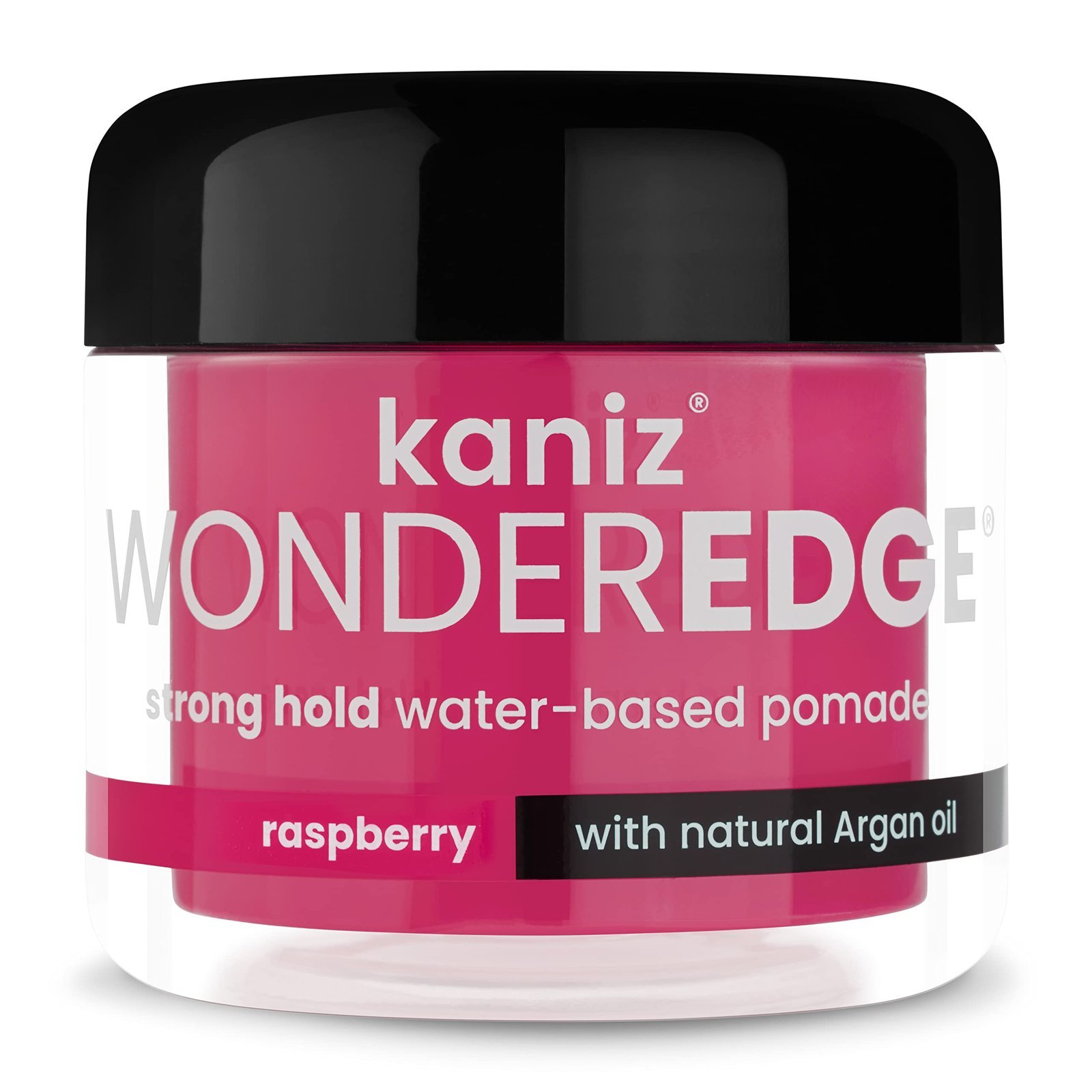 Keep your edges sleek and defined with Kaniz Wonderedge Strong Hold Water-Based Pomade Raspberry with Natural Argan Oil. This non-greasy, water-based formula delivers strong hold, smooths flyaways, and adds brilliant shine while nourishing hair for a polished, long-lasting finish.