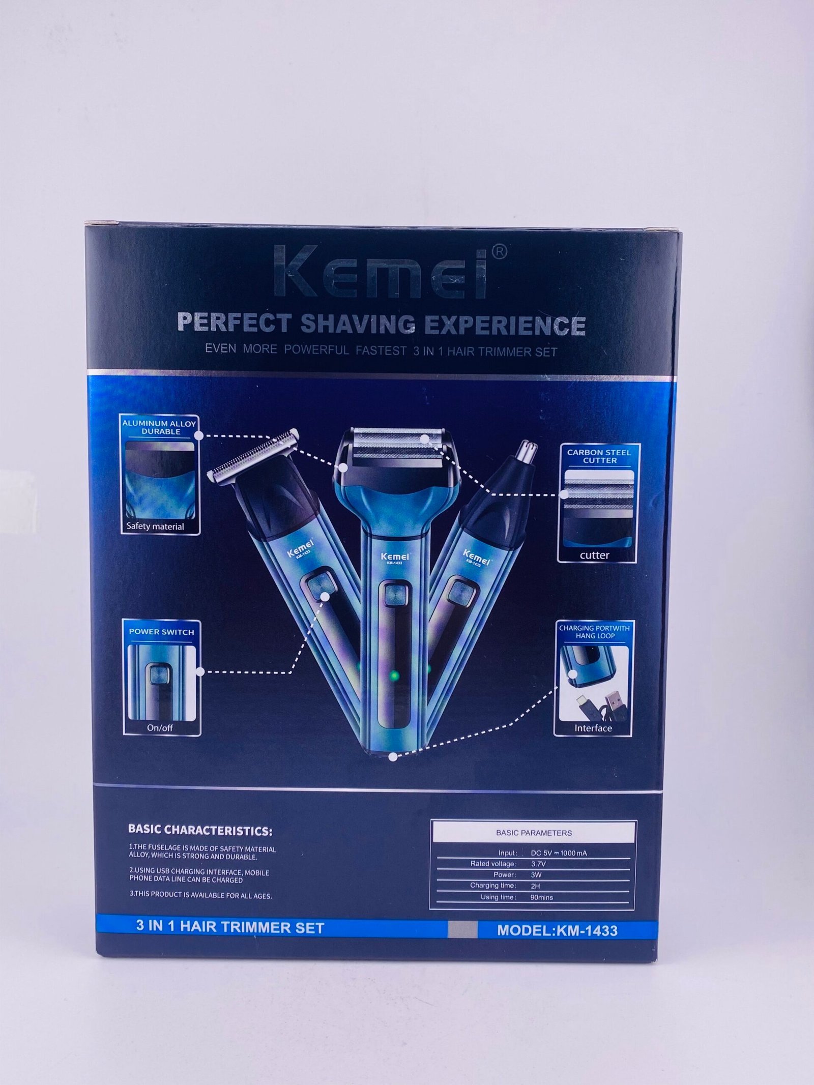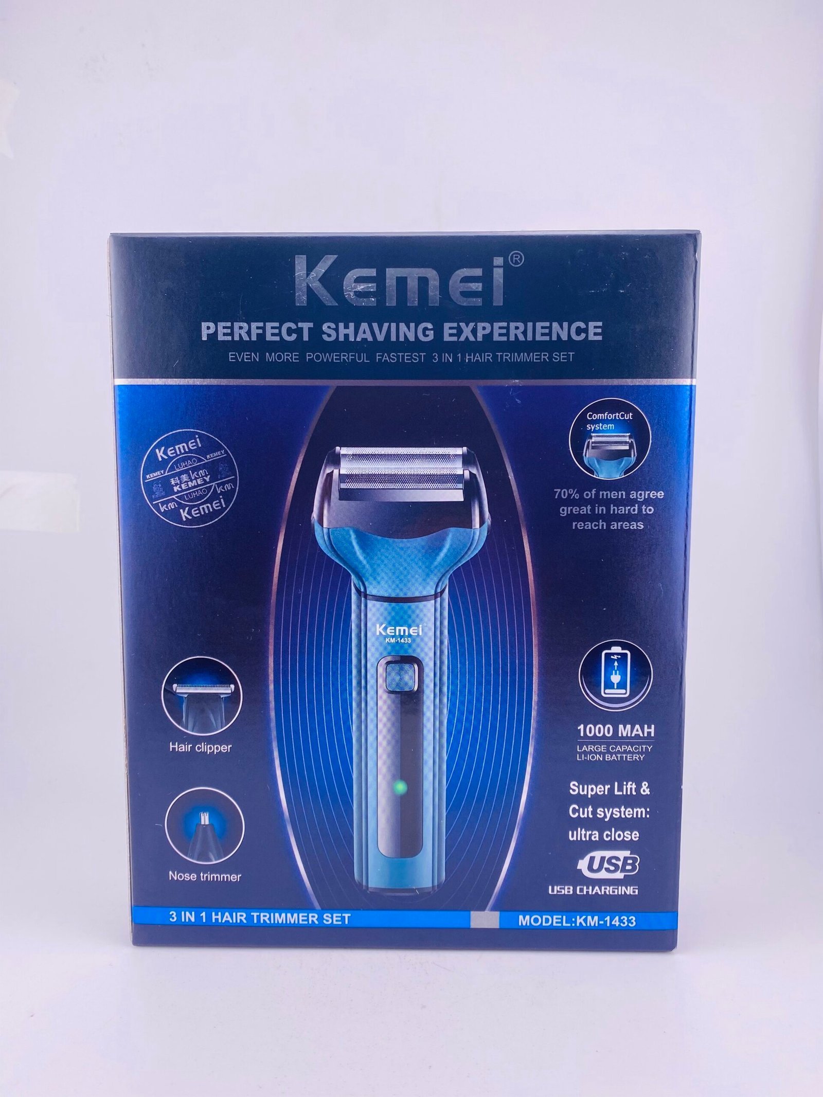 The KEMEI 3‑in‑1 Rechargeable Hair Trimmer Set for Men is an all‑in‑one cordless grooming kit that combines three essential tools in a single device — typically a hair clipper, shaver, and nose/ear trimmer — so you can trim, shave, and tidy different facial and body hair areas with one gadget. It runs on a rechargeable battery with USB charging, has stainless‑steel blades for smooth, precise cutting, and often includes detachable heads and accessories (like cleaning brush and combs) for versatile styling and easy maintenance. This compact, ergonomic set is designed for everyday grooming at home or while traveling, helping you stay well‑groomed without needing separate tools.