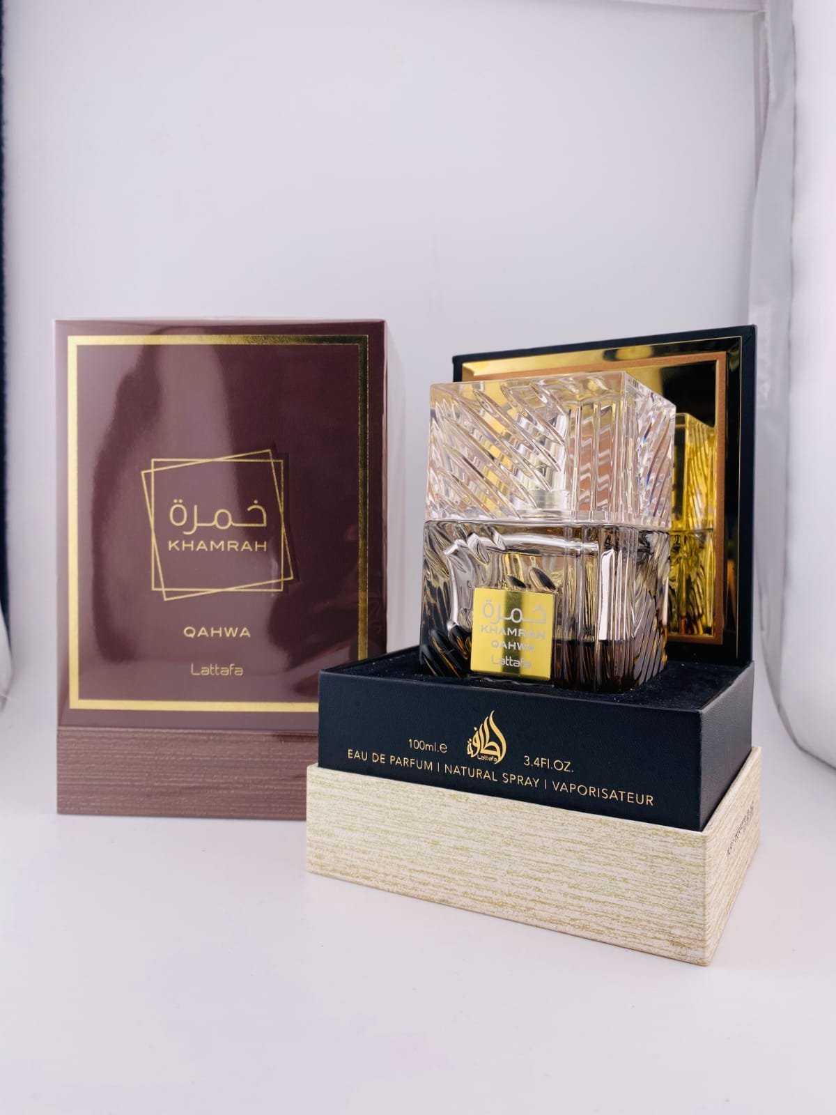 Lattafa Qahwa Khamrah EDP is a warm, rich, unisex oriental‑gourmand fragrance inspired by Arabic coffee culture. It opens with spicy top notes like cinnamon, cardamom and ginger, then moves into a sweet, creamy heart of praline, candied fruits and white flowers, and dries down to a cozy base of coffee, vanilla, tonka bean, benzoin and musk. The result is a comforting, slightly sweet yet spicy scent with good longevity—perfect for cooler weather, evenings, or when you want a bold, inviting aroma.