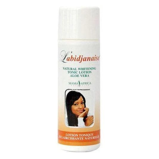 MAMA AFRICA Labidjanaise Natural Whitening Tonic Lotion Aloe Vera is a refreshing skincare toner designed to brighten and even out the complexion. Infused with aloe vera, it helps soothe, hydrate, and revitalize the skin while reducing the appearance of dark spots and dullness. Its lightweight formula absorbs quickly, leaving the skin feeling clean, smooth, and refreshed. Suitable for daily use, it supports a clearer, more radiant look and promotes softer, healthier-looking skin over time.
