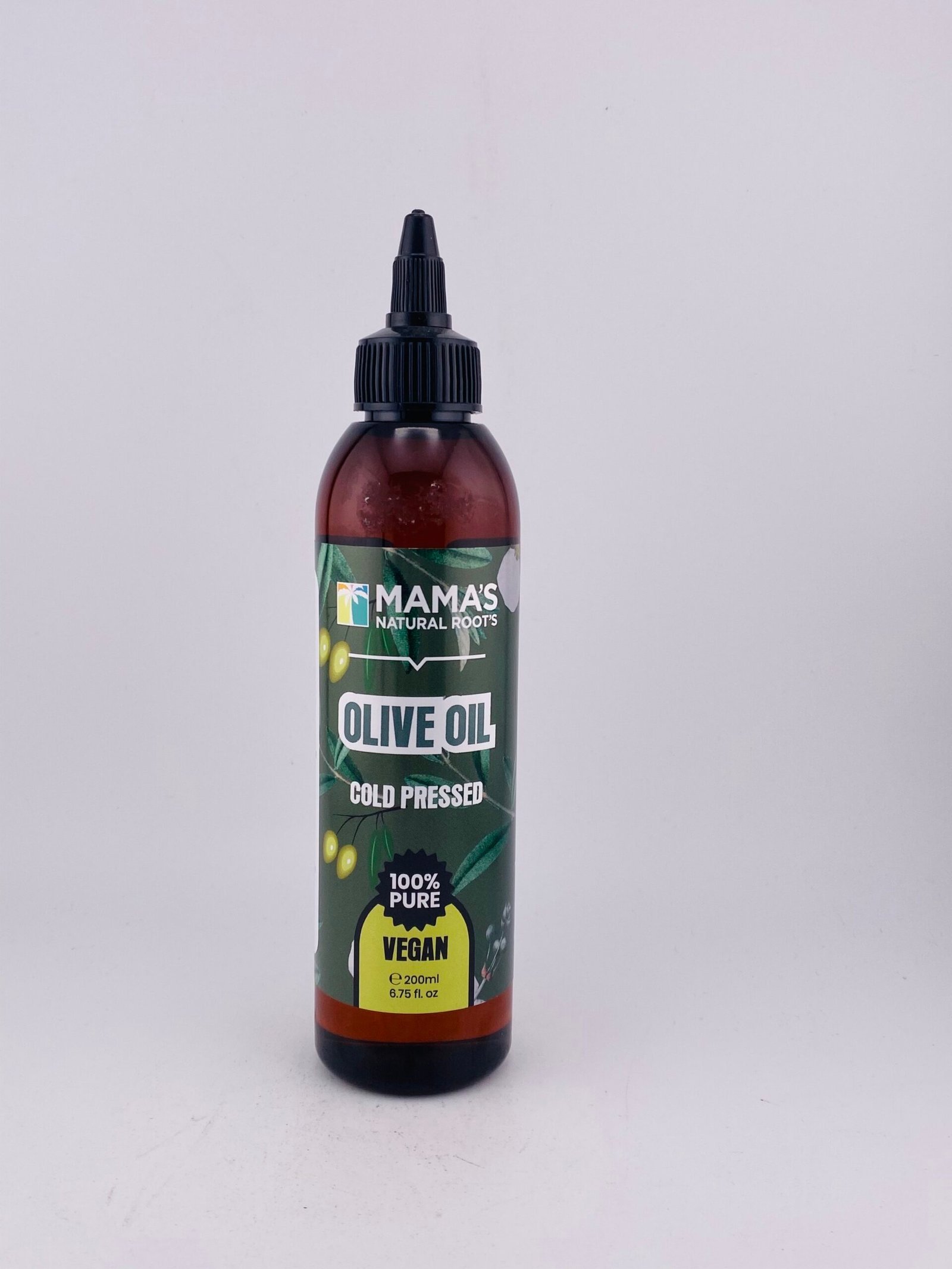 MAMA’S NATURAL ROOT’S Olive Oil Cold Pressed 100% Pure Vegan (200 ml / 6.75 fl oz) is a pure, cold‑pressed plant oil that retains the natural nutrients, antioxidants and healthy fats found in olives. Cold pressing preserves its beneficial compounds without heat or chemicals, making it useful for deeply moisturizing dry skin and scalp, adding softness and shine to hair, and helping nourish and protect skin and hair from environmental stress. It’s vegan and free from artificial additives, suitable for topical beauty‑care routines.