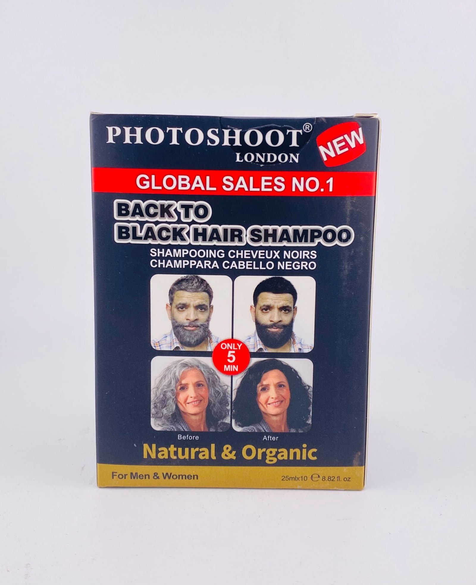 Achieve rich, natural-looking black colour with New Photoshoot London Black Hair Shampoo Natural & Organic. This easy-to-use formula cleanses and colours in one step, helping to cover grey hairs while leaving hair soft, smooth, and shiny.