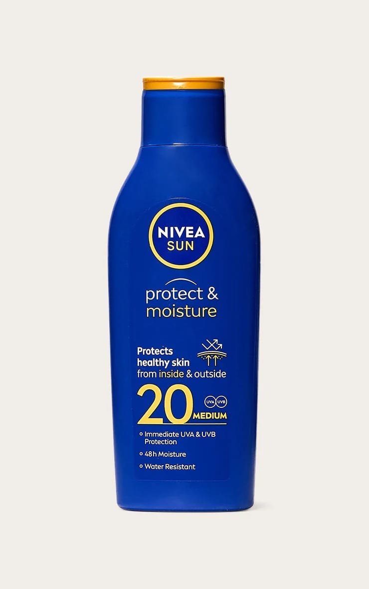NIVEA SUN Protect & Moisture (200 ml / 8.2 fl oz) is a sunscreen lotion that offers broad-spectrum protection against harmful UVA and UVB rays while also providing hydration to the skin. Its formula helps prevent sunburn and sun damage, and with moisturizing ingredients, it keeps skin feeling soft and comfortable. Lightweight and non-greasy, it absorbs easily, making it ideal for daily use on face and body to protect and nourish skin under the sun.