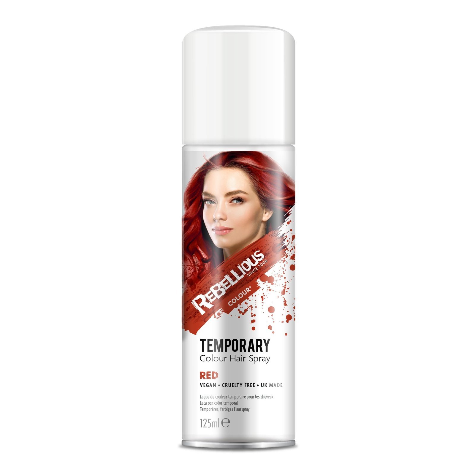 Rebellious Temporary Red Colour Hair Spray provides instant vibrant red colour with an easy wash-out formula. Ideal for parties, events, and creative temporary hair styling.