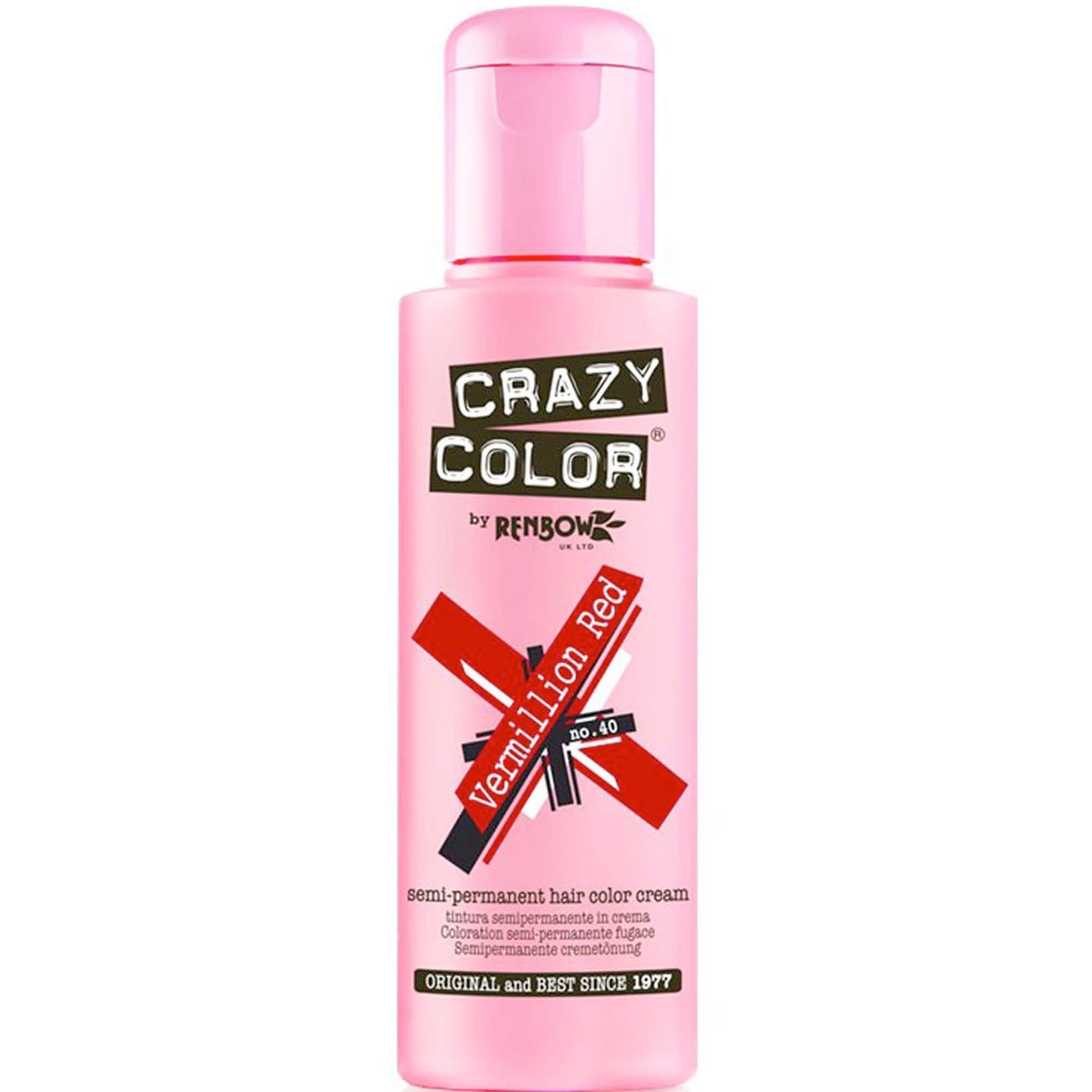 Create bold vibrant tones with RENBOW Crazy Color Vermilion Red No.40 Semi-Permanent Hair Color Cream. Conditioning formula delivers intense red colour with added shine on pre-lightened hair.