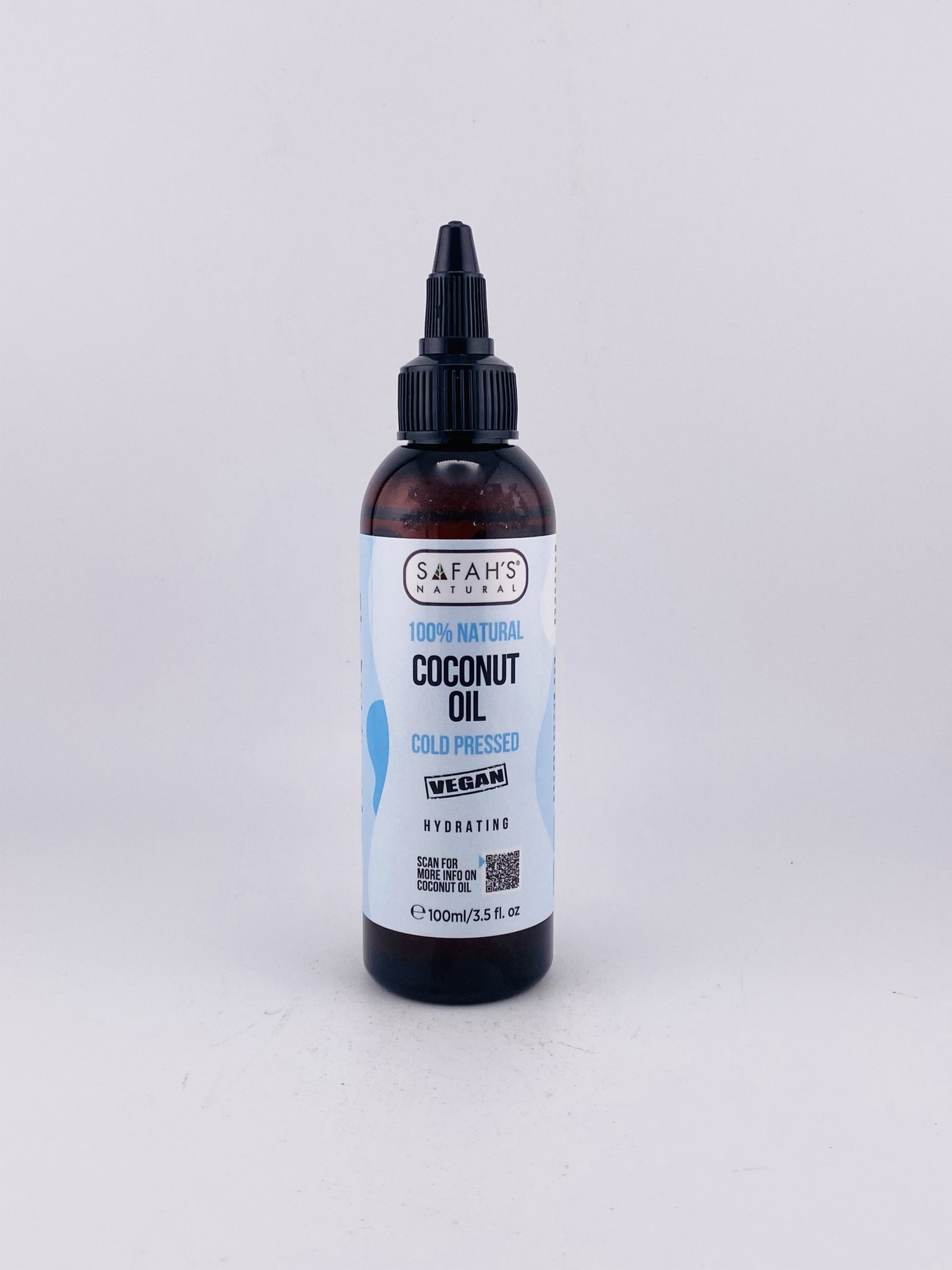 SAFAH’S NATURAL 100% Natural Coconut Oil Cold Pressed VEGAN (100 ml / 3.5 fl oz) is a vegan, all‑natural beauty oil extracted gently through cold‑pressing to preserve its nutrients and goodness. It’s deeply hydrating and nourishing for both skin and hair, helping to moisturize dryness, add natural shine, support a healthy scalp, and improve texture without synthetic additives. Its lightweight yet rich formula makes it a versatile choice for daily natural skincare and haircare routines.