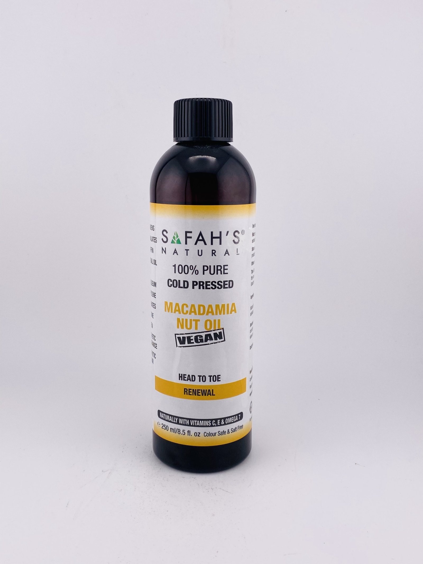 SAFAH’S NATURAL 100% PURE COLD PRESSED MACADAMIA NUT OIL VEGAN(250ml) 8.5 fl oz