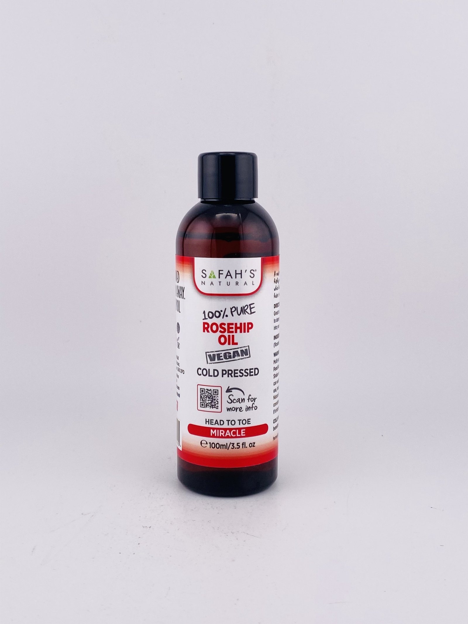 SAFAH’S NATURAL 100% Pure Rosehip Oil VEGAN (100 ml / 3.5 fl oz) is a vegan, all‑natural cold‑pressed botanical oil made from the seeds of rosehip fruit. It’s rich in essential fatty acids and vitamins A, C and D, which help deeply moisturize and nourish skin, support natural skin repair and renewal, and may assist with reducing the appearance of fine lines, scars or dark spots for a more radiant, even complexion. The lightweight oil can also be used on hair to condition and strengthen strands and soothe dry scalp, making it a versatile addition to natural beauty routines without synthetic additives.