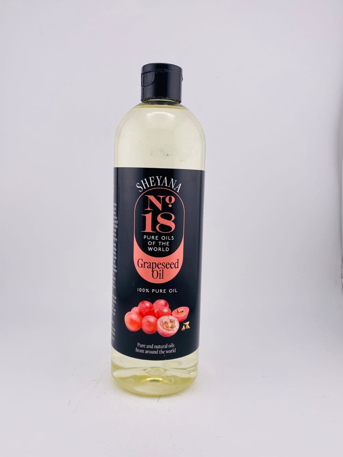 SHEYANA No.18 Grapeseed Oil is a high‑quality, all‑natural oil extracted from grape seeds, known for its light texture and neutral flavor. Rich in antioxidants and healthy fatty acids, it’s valued for both culinary and cosmetic uses. In the kitchen, it’s excellent for salad dressings, sautéing, and low‑heat cooking, adding subtle richness without overpowering dishes. In skincare and haircare, the oil’s nourishing properties help moisturize, condition, and protect, making it ideal for dry skin, scalp treatments, and massage applications. Packaged in a generous 500 ml (17.6 fl oz) bottle, SHEYANA Grapeseed Oil offers versatile natural goodness for everyday wellness, beauty, and cooking needs.