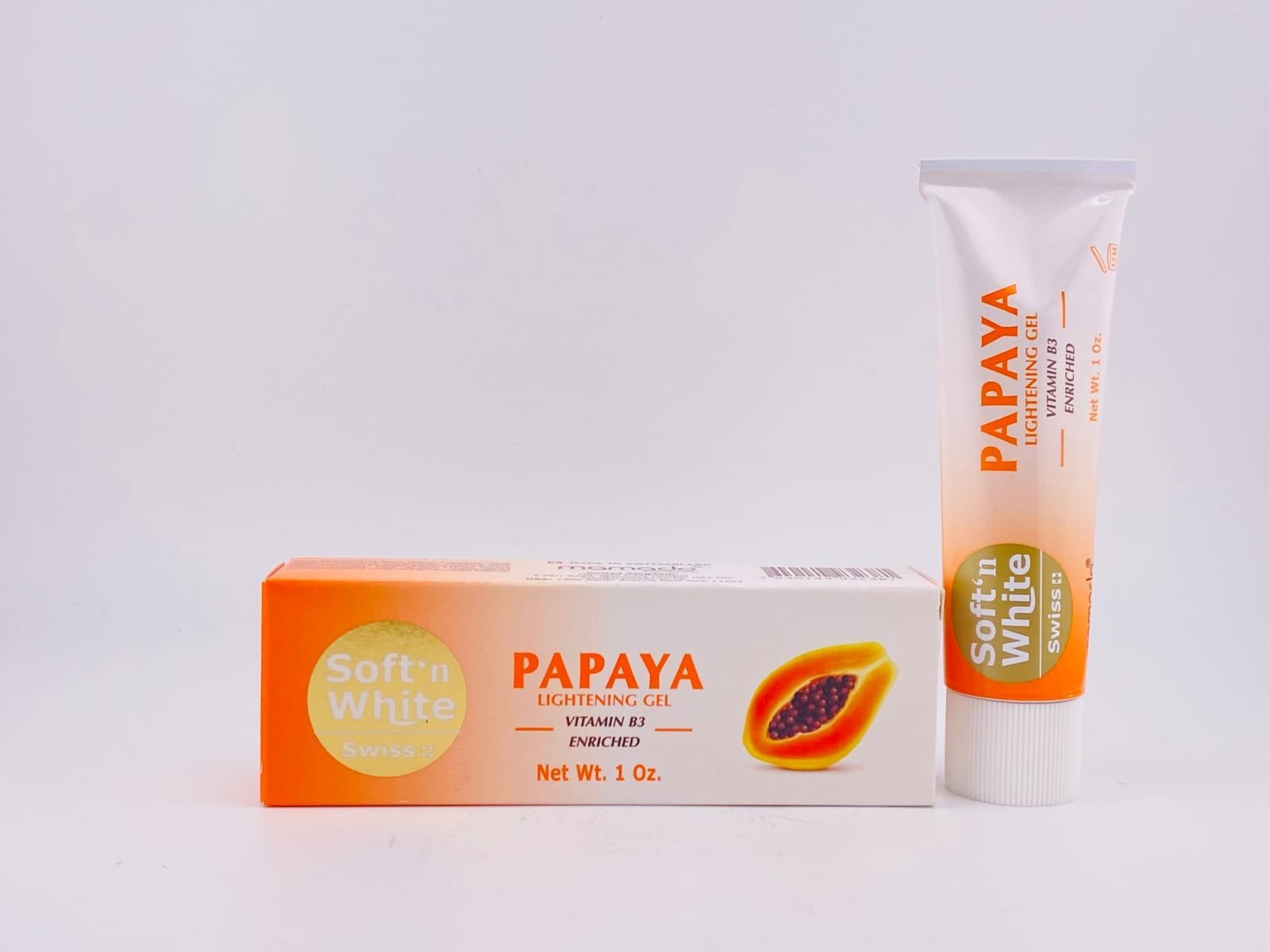 Soft’n White Papaya Lightening Gel is formulated to brighten and even out skin tone while providing gentle hydration. Enriched with papaya extract, it helps reduce dark spots, blemishes, and dullness, promoting a more radiant and refreshed complexion. Its lightweight, fast-absorbing gel leaves skin feeling soft, smooth, and comfortable. Suitable for daily use, it supports a healthier-looking, luminous, and evenly toned skin.