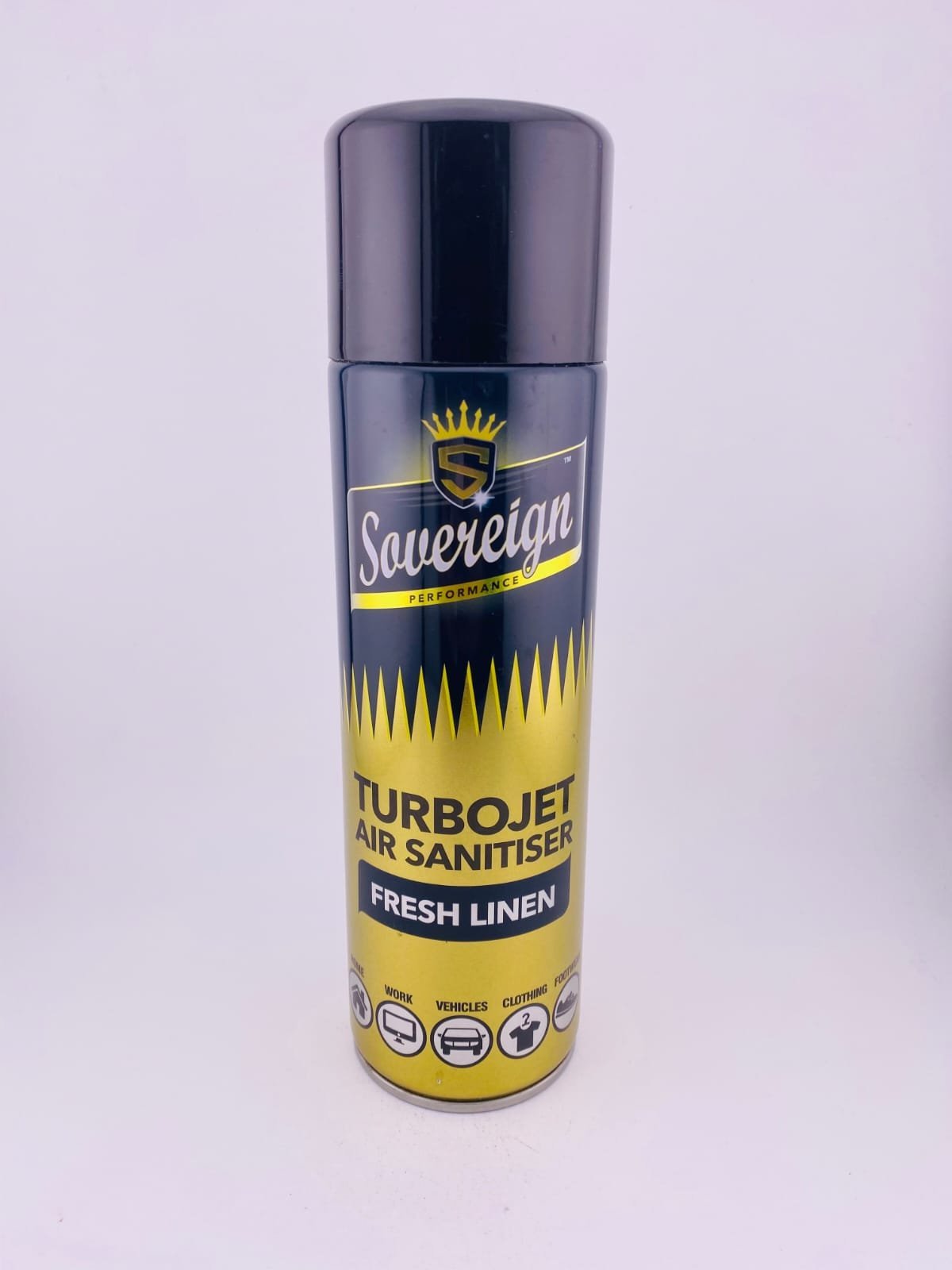 The Sovereign TURBOJET Air Sanitiser Fresh Linen is a high‑performance aerosol spray that quickly neutralises unpleasant odours and fills enclosed spaces with a clean, soft fresh linen fragrance. It uses a powerful “turbojet” valve to deliver a strong burst of perfume, making it suitable for use in cars, offices, bathrooms, or any other indoor area where you want a lasting, fresh scent and fresher‑smelling air. (sovereignaerosols.co.uk)