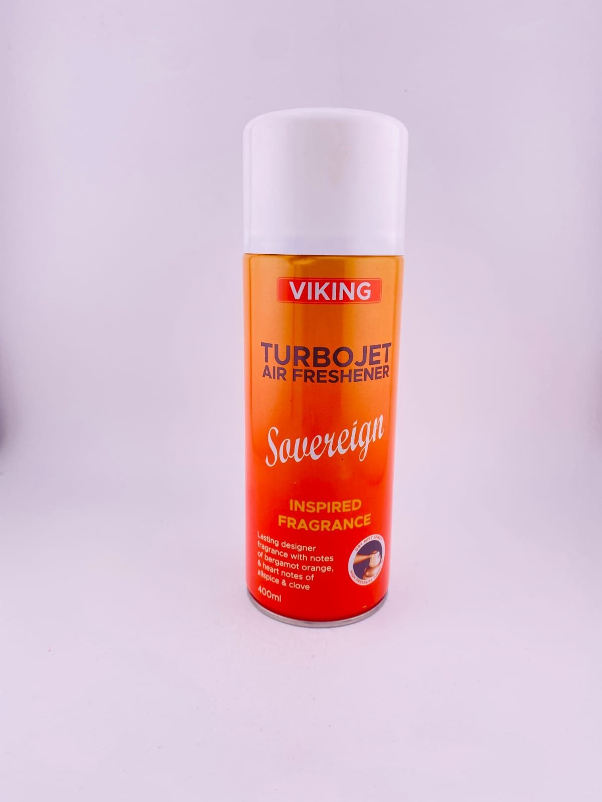 Sovereign Viking Air Freshener is a high‑strength aerosol room/car freshener with a designer‑inspired scent. It typically features top notes of bergamot and citrus, followed by spicy heart notes like allspice and clove, giving it a warm, aromatic, slightly spicy fragrance that helps neutralize odors and fill enclosed spaces with a lasting, rich, comforting aroma rather than just a simple fresh or floral smell.