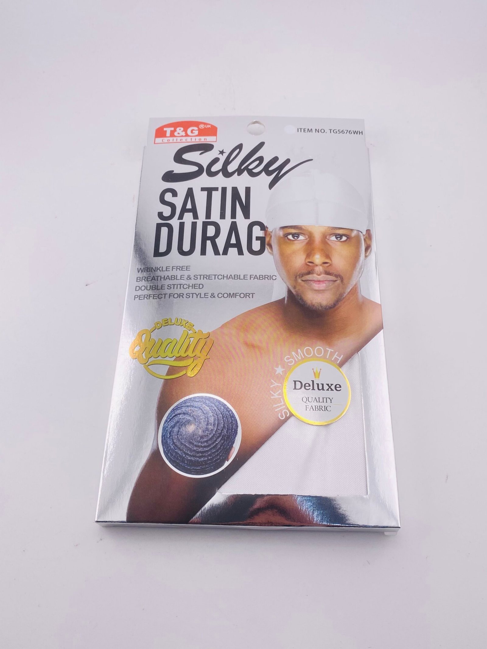 Maintain smooth, frizz-free hair with the T&G Collection White TG5676WH Silky Satin Durag. Made from deluxe-quality silky satin, this durag provides excellent comfort, breathability, and a secure fit for all head sizes. Perfect for creating and maintaining waves, protecting hairstyles, and keeping hair moisturized overnight or during daily wear. Its long, adjustable ties allow easy styling while the soft fabric ensures hair stays healthy, shiny, and manageable. Ideal for both style and functionality.